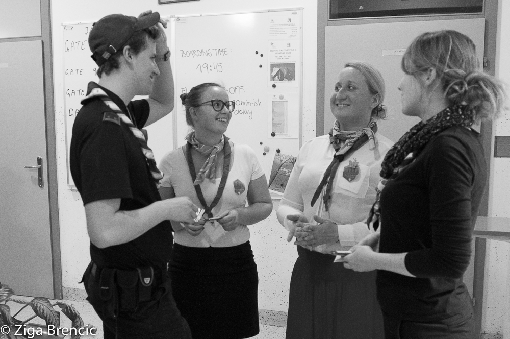 During the troop leader meeting of the Slovenian contingent to WSJ in USA 2019 we tested how the flight with the airline Jamwinx will look like. The airport staff was friendly π Our caption was luckily not blind as he pretended at first. He is more of a selfie guy. Safty first.Planning the presentation of Slovenia.Johny