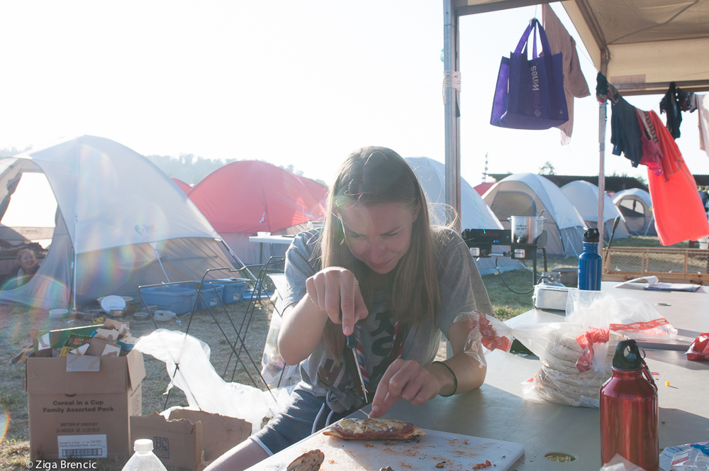 We are getting milk tomorrow evening. Great. Of course they were selling scrambled eggs packed in milk bottles. You know just to remind us that we were in USA.After breakfast some went to the morning service while others played cards. I used the time to read some emails and do the laundry. After 17 days on the rode Iām starting to feel that I'm burned out. Lack of sleep, constant activities, crappy US food don't really help. We've got 9 more days to go but we'll manage. At 12:00 I headed out of the camp to see the sustainable tree house. Cool to see but I haven't seen a tree house with so much metal before. As I was walking to the presentation tents those guys flew above me: