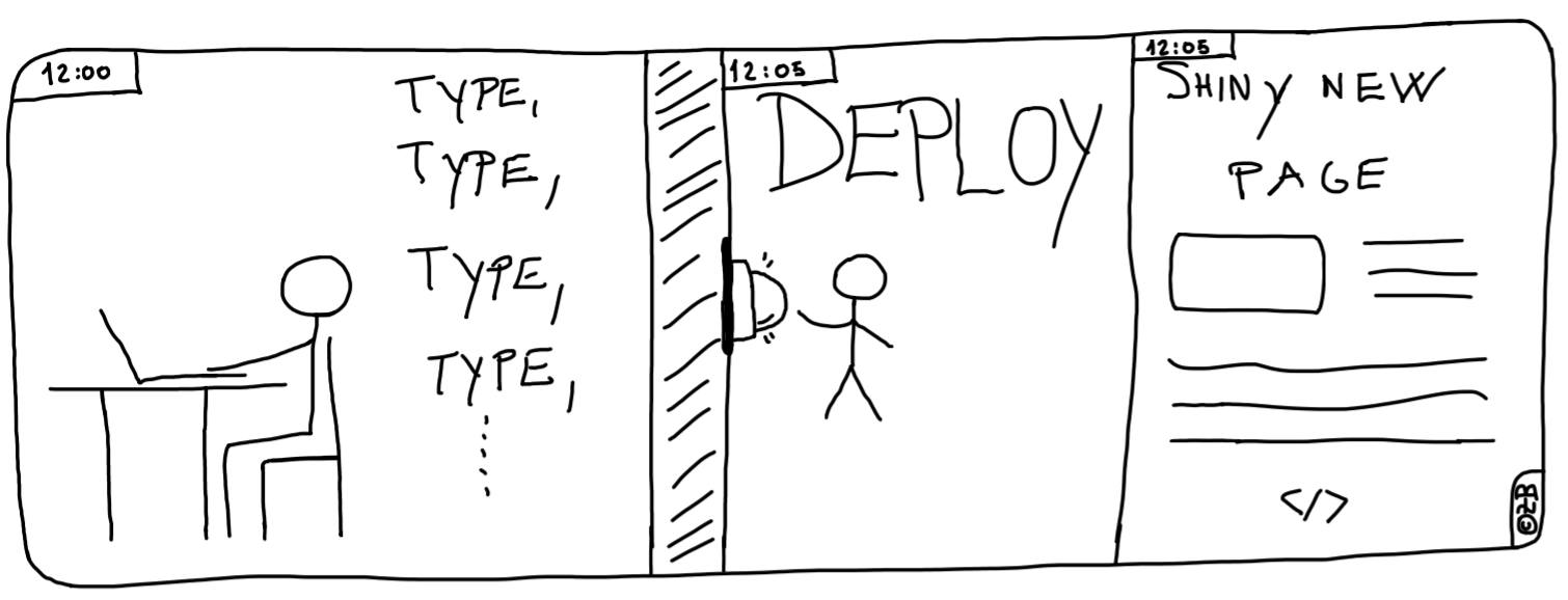 I won't go into the details this time. Process definitely has flaws but is simple. All of the pages I work with have some down time so this kind of deployment works perfectly fine.