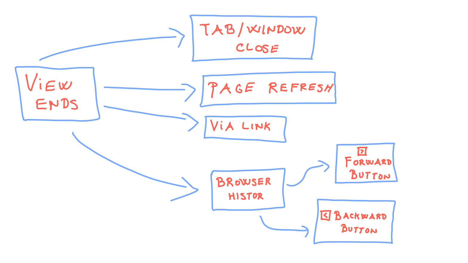 - connection reestablished during page view: no issue - user revisits a page in the future: fetch view data from user browser localStorage if the user didn't clean it - the user never comes back to our site: data lost