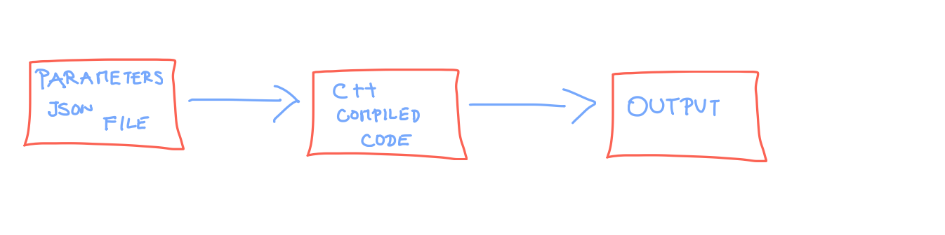 C++ code once and then control the processing output via a JSON file. Advantages:parameters.JSON file as the input file the implementation becames a bit more technical. Example class implementation below:#include