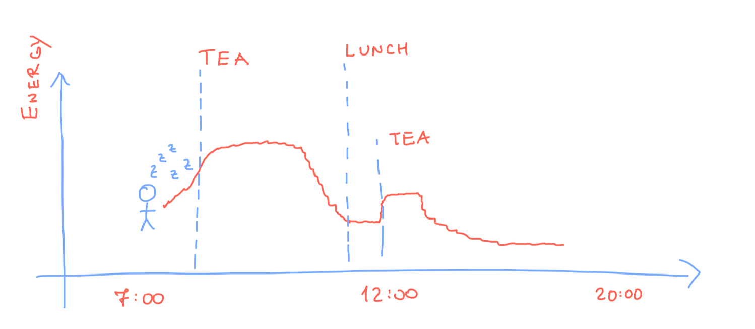 Around two to three hours after I wake up, my energy levels rise. If I'm rested, I can achieve a high focus for one or two hours. Then I get hungry. I learned that postpone the hunger with light nuts, fruit for an extra hour but till 13h I'll be tired. Time for lunch and refuel the tank.Energy vs. Time After lunch, my energy levels drop. Significantly and until around hour and a half after lunch, my productivity is well nonexistent. The black tea helps, but it just prolongs the inevitable fact. Much needed break.So what I try to do when working from home is take a longer (1.5h) lunch break with half-hour nap. After the nap, I drink my black tea and can get another 2-3h of really focused work in. Then around 18h, I'll be tired again.I got my 8h of work, but I extended my workday. Right? Not necessarily if you make a longer lunch break, you can make the most of it and go for a walk, run. Whatever refreshes you. If you prefer a short and refreshing lunch break, consider preparing your food a day before. Then use the time for the nap.Sure, you can't afford to have such a schedule every day. But 2-3 days a week are doable as long as your job allows you to do part of the work from home. I know I can't build a particle accelerator at home. I'm not Tony Stark, unfortunately. So I have to drop to the research institute from time to time. When I do and miss my afternoon nap:Energy vs. Time Well then focus on the second half of the day is just low.I hope that the Coronavirus outbreak will convince a boss or two that it makes sense to allow employees to work from home from time to time. After all, in the knowledge economy, it's more important how you manage your energy and attention than time.Figure out your energy levels and try to do the majority of the work then.