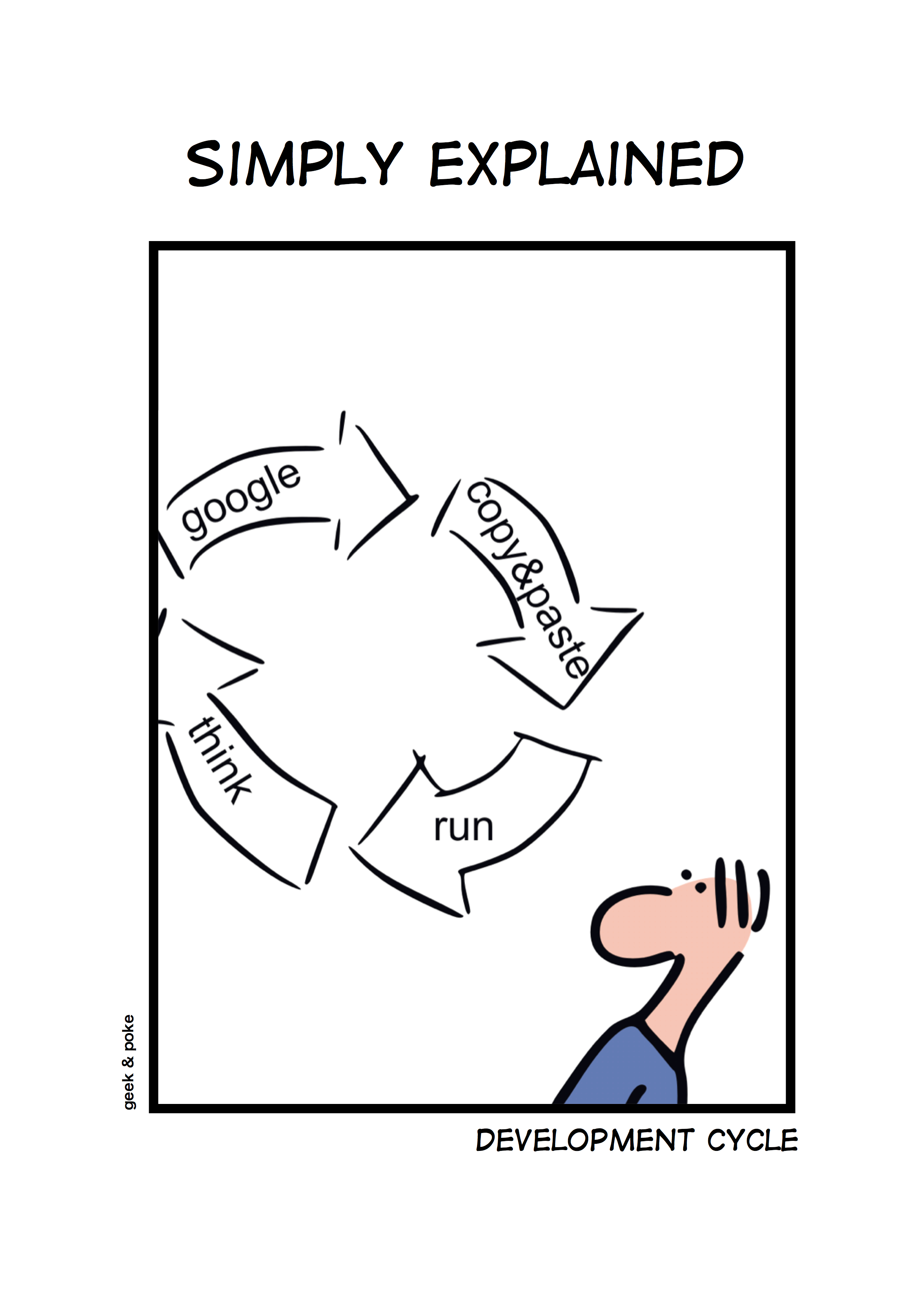 Figuring out how to follow the above process is hard. It does take the experience to execute it properly, but it helps a hell of a lot if someone teaches you a few tricks.Now we come to the point where a large part of developers will disagree with me. As a physicist, I was trained to question everything. I'll dig and dig until I get the bigger picture and figure out how pieces fit together.So let's invest more effort into ensuring that juniors have the bird's-eye view of the whole filed. We should cover the full stack but not expect anyone to be a full stack developer.We should help juniors construct a table of content/map in their head. Help them understand where they can find the best tool, why to use it and when they should look into a specific corner of the web. Truth be told the amount of information out there is too vast for any other approach anyway.