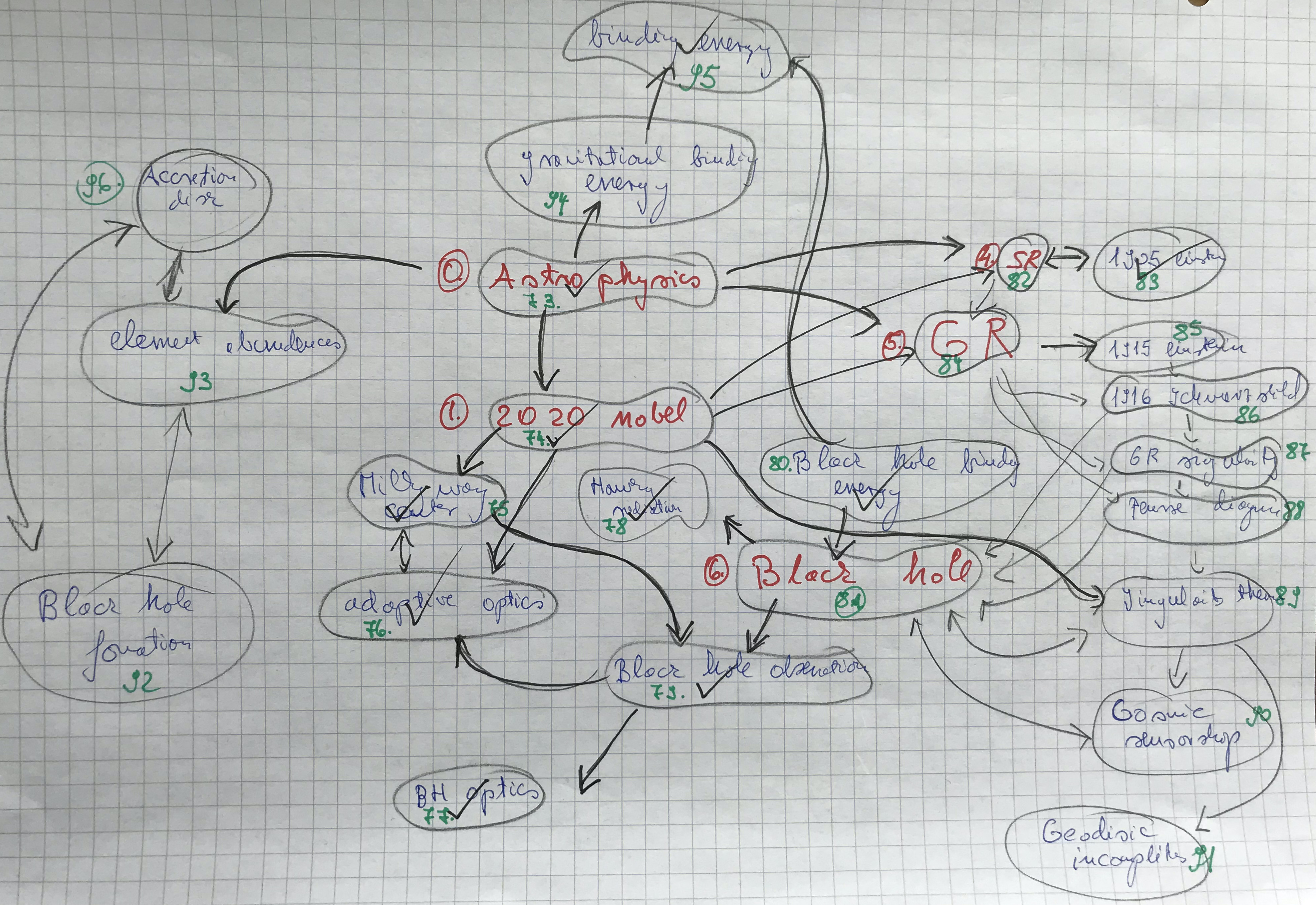 So how do we approach neuron creation? Simple. You get across a new topic, write a note, assign it a number, connect it to the rest of notes, and that's it.For example, recently, I attended a physics seminar where the lecturers explained the concepts behind the 2020 Physics Nobel prize. I learned around 30 new concepts. So I created 30 neurons. Since it was a bit messy to connect them all I made a sketch: