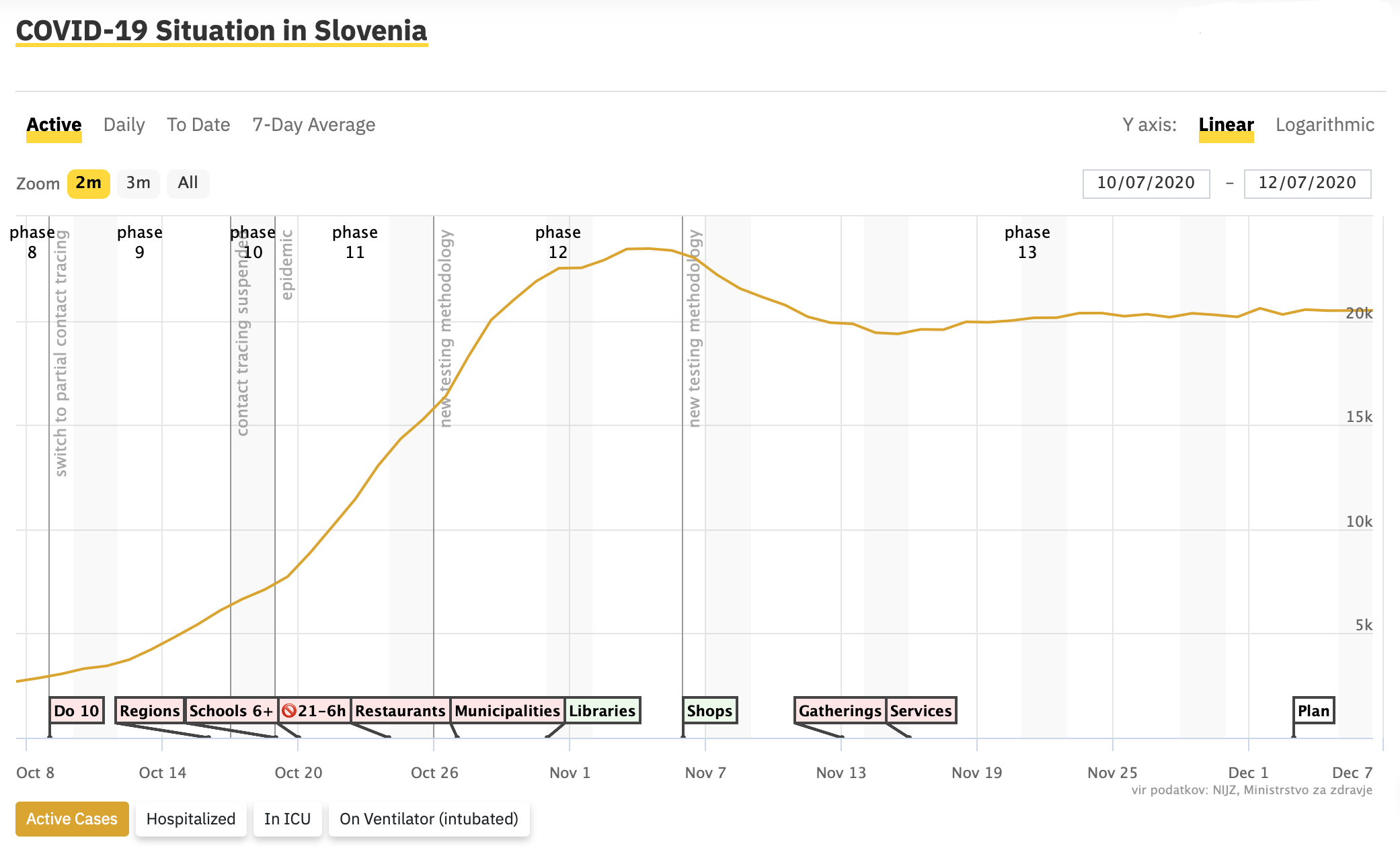 Don't know about you but this Corona/lockdown thingy pretty much destroyed all of my habits. Reading, walking, running, early wake-ups are gone. In a span of a month and a half, I'm back to square one.It's even worse. Two days ago, I walked two flights of stairs and actually had to pause a bit to catch my breath. Two months ago, I could easily run up a hill. I wasn't ill or anything in the past few weeks, I've been just stuck at home ... πThere's no playbook here. Every self-help book that was written before 2020 is pretty much useless at the moment.The second locked down we are currently in is much, much worse than the first one in March. And as far as the data for Slovenia shows (on 2020-12-06) we are in a stationary state of the pandemic:yes the number of currently infected has been pretty much stable for over a month in Slovenia. Unless something revolutionary happens in a short time, we'll be in the current situation for several more months (if it doesn't get worse with holidays approaching) and this sucks. But that's our new reality.