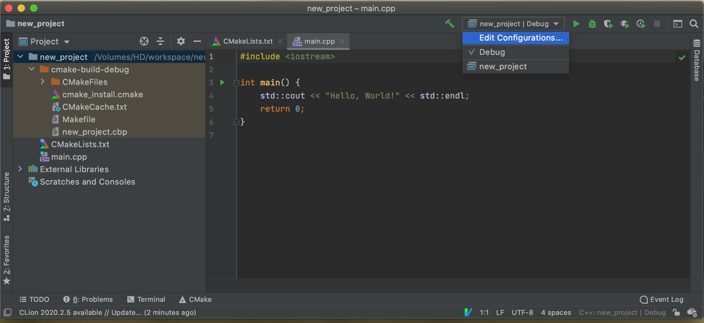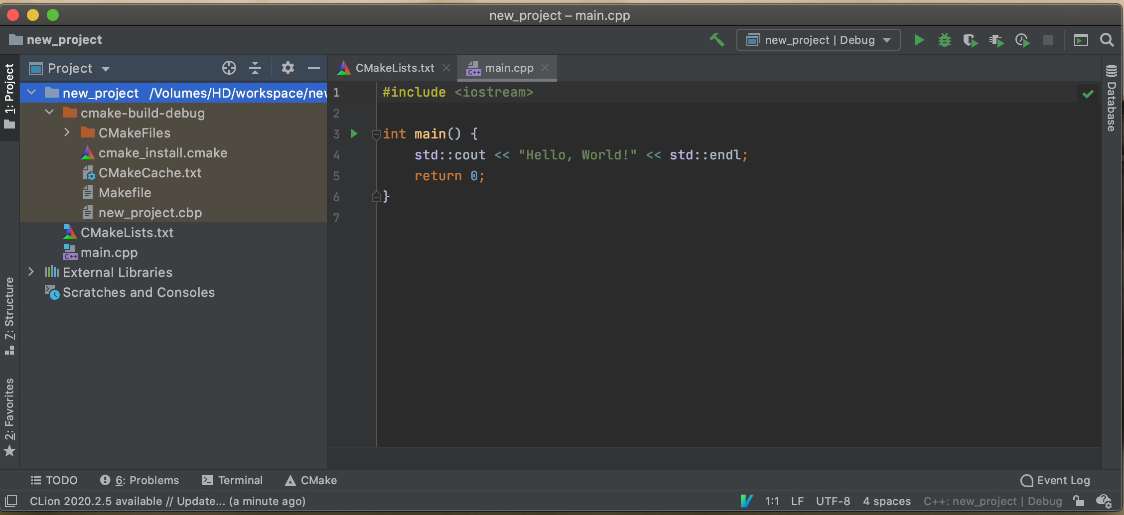 C++ standard that you want to use. Or you can import/open an existing project from your disk. I prefer to start project structure through the command line using mkdir, touch, ... and then just open the project in CLion. For some reason, I find it more manageable.Although if you're using the editor for the first time, create a new project with CLion directly to get the feeling for the editor. C++ program in CLion?