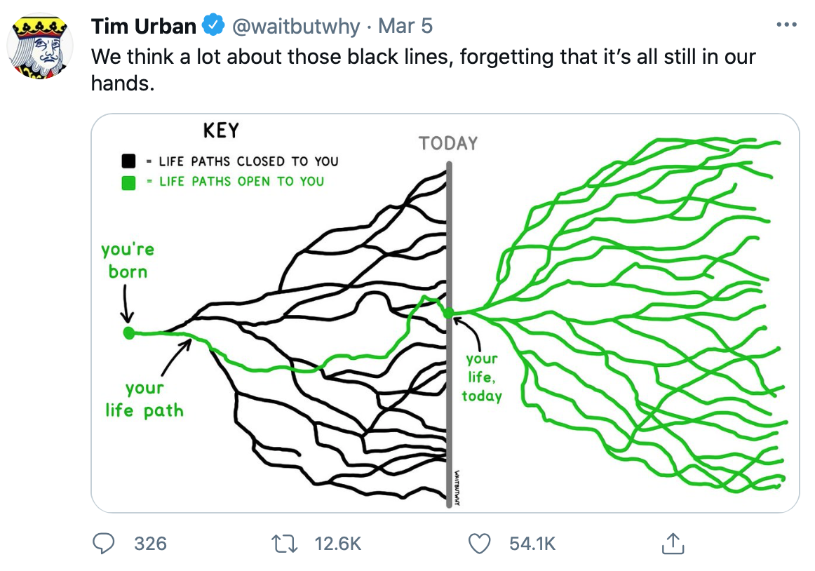 In life we have many paths in front of us. We could walk them all but we can't pursue all of them:When we have an abundance of options, we can get paralysed. Which path is the right one? If I do x, do I then have to give up y? From personal experience, I can say that you have to find the balance around what you value. You can't have it all, but you can have a lot. I think.For example, I'm doing a PhD and trying to create a Freedom business (emphasise on trying here). That means that I also work on weekends. I "sacrifice" a few things so I can work on those two things. That's OK because I decided to do so.